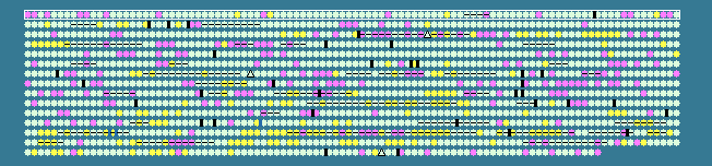 Bartonella henselae str. Houston-1, complete genome - 1..1931047 1488 proteins Pos %G+C SD Location Strand Length PID Gene Synonym Code Product 1 35.27 -1 1..825 + 274 49474832 - BH00010 - hypothetical protein 2 34.00 -1 837..1433 + 198 49474833 maf-1 BH00020 - septum formation maf protein 3 37.53 0 1426..2307 + 293 49474834 aroE BH00030 - shikimate 5-dehydrogenase 4 33.16 -1 2304..2891 + 195 49474835 coaE BH00040 - dephospho-CoA kinase 5 36.58 0 2896..3603 + 235 49474836 dnaQ BH00050 - DNA polymerase III epsilon chain 6 38.73 0 3932..6838 + 968 49474837 polA BH00060 - DNA polymerase I 7 39.91 0 6854..7735 - 293 49474838 - BH00070 - hypothetical protein 8 39.79 0 7827..8600 - 257 49474839 - BH00080 - hypothetical protein 9 33.55 -1 9215..11056 - 613 49474840 - BH00090 - hypothetical protein 10 32.52 -2 11591..12082 - 163 49474841 lspA BH00100 - lipoprotein signal peptidase 11 39.12 0 12079..12942 - 287 49474842 - BH00110 - tRNA/rRNA methyltransferase 12 42.12 0 12930..13862 - 310 49474843 - BH00120 - SAM dependent methyltransferase 13 31.65 -2 14030..14326 - 98 49474844 - BH00130 - hypothetical protein 14 41.58 0 14335..14613 - 92 49474845 ihfB BH00140 - integration host factor subunit beta 15 38.56 0 14805..15455 + 216 49474846 - BH00150 - hypothetical protein 16 37.82 0 15567..16145 + 192 49474847 - BH00160 - hypothetical protein 17 39.12 0 16152..16946 + 264 49474848 - BH00170 - ABC transporter/ATP-binding protein 18 40.22 0 18188..18652 + 154 49474849 ptsN BH00180 - nitrogen regulatory IIA 19 38.43 0 19662..20171 + 169 49474850 - BH00190 - hypothetical protein 20 40.99 0 20212..21438 + 408 49474851 - BH00200 - hypothetical protein 21 34.12 -1 21443..22081 - 212 49474852 - BH00210 - hypothetical protein 22 40.61 0 24179..25840 + 553 49474853 lysK BH00240 - lysyl-tRNA synthetase 23 40.62 0 25840..27417 + 525 49474854 prfC BH00250 - peptide chain release factor 3 24 37.35 0 27517..27840 - 107 49474855 trxA BH00260 - thioredoxin 25 39.85 0 27936..31418 - 1160 49474856 addA BH00270 - ATP-dependent nuclease subunit A 26 41.02 0 31415..34537 - 1040 49474857 - BH00280 - hypothetical protein 27 40.23 0 37929..40394 - 821 49474858 - BH00300 - sensor histidine kinase protein 28 41.06 0 40432..41829 - 465 49474859 ahcY BH00310 - S-adenosyl-L-homocysteine hydrolase 29 40.30 0 43332..44336 - 334 49474860 - BH00320 - NADH-ubiquinone oxidoreductase 30 39.17 0 44374..45693 - 439 49474861 folC BH00330 - folylpolyglutamate synthase 31 40.50 0 45697..46617 - 306 49474862 accD BH00340 - acetyl-CoA carboxylase subunit beta 32 36.25 -1 47628..48347 - 239 49474863 - BH00360 - CysZ-like protein 33 43.45 +1 49481..50893 - 470 49474864 dfp BH00380 - bifunctional phosphopantothenoylcysteine decarboxylase/phosphopantothenate synthase 34 40.14 0 50964..52550 - 528 49474865 aarF BH00390 - ubiquinone biosynthesis protein aarF 35 40.10 0 52554..53336 - 260 49474866 ubiE BH00400 - ubiquinone/menaquinone biosynthesis methyltransferase 36 42.62 0 53453..55885 - 810 49474867 gyrB BH00410 - DNA gyrase subunit B 37 35.29 -1 58671..59540 + 289 49474868 - BH00430 - ABC transporter, periplasmic amino acid-binding protein 38 44.88 +1 59552..61084 - 510 49474869 comM BH00440 - competence protein comM 39 39.45 0 61518..63479 + 653 49474870 - BH00450 - hypothetical protein 40 37.64 0 63479..68125 + 1548 49474871 - BH00460 - hypothetical protein 41 37.13 0 70373..72139 - 588 49474872 msbA BH00480 - ABC transporter, ATP-binding protein 42 38.73 0 72362..72880 - 172 49474873 infC BH00490 - translation initiation factor IF-3 43 39.87 0 73074..73853 + 259 49474874 - BH00500 - hypothetical protein 44 40.70 0 73890..74636 + 248 49474875 - BH00510 - hypothetical protein 45 41.35 0 74859..76031 + 390 49474876 dapE BH00520 - succinyl-diaminopimelate desuccinylase 46 42.42 0 76229..77428 - 399 49474877 hemN BH00530 - coproporphyrinogen III oxidase 47 40.59 0 77425..78072 - 215 49474878 - BH00540 - putative deoxyribonucleotide triphosphate pyrophosphatase 48 42.39 0 78383..79453 + 356 49474879 hrcA BH00550 - heat-inducible transcription repressor 49 41.93 0 79589..80251 + 220 49474880 grpE BH00560 - heat shock protein (hsp-70 cofactor) grpE 50 38.33 0 80379..80918 - 179 49474881 - BH00570 - ABC transporter (permease) 51 42.42 0 81512..81742 - 76 49474882 ptsH BH00580 - phosphocarrier protein 52 40.10 0 81827..82225 - 132 49474883 - BH00590 - PTS system, IIA component 53 39.78 0 82353..82817 - 154 49474884 hprK BH00600 - hypothetical protein 54 40.56 0 82841..84625 - 594 49474885 batS BH00610 - two-component sensor histidine kinase 55 40.39 0 84665..85387 - 240 49474886 batR BH00620 - transcriptional regulator 56 34.21 -1 85828..86283 + 151 49474887 - BH00630 - hypothetical protein 57 39.93 0 86412..86972 - 186 49474888 - BH00640 - hypothetical protein 58 40.57 0 87832..89724 + 630 49474889 dnaK BH00650 - molecular chaperone DnaK 59 42.50 0 89883..91028 + 381 49474890 dnaJ1 BH00660 - heat shock protein DnaJ 60 40.73 0 94170..95075 + 301 49474891 argB BH00690 - acetylglutamate kinase 61 39.20 0 95098..96018 + 306 49474892 - BH00700 - hypothetical protein 62 40.70 0 96596..98401 + 601 49474893 lepA BH00710 - GTP-binding protein LepA 63 40.05 0 98477..99325 - 282 49474894 dapD BH00720 - 2,3,4,5-tetrahydropyridine-2-carboxylate N-succinyltransferase 64 39.24 0 99433..100296 + 287 49474895 - BH00730 - hypothetical protein 65 44.22 +1 100329..101072 - 247 49474896 truA BH00740 - tRNA pseudouridine synthase A 66 41.99 0 101074..102009 - 311 49474897 fmt BH00750 - methionyl-tRNA formyltransferase 67 39.55 0 102009..102539 - 176 49474898 def BH00760 - polypeptide deformylase 68 39.07 0 102631..103815 + 394 49474899 - BH00770 - hypothetical protein 69 42.35 0 103924..104511 + 195 49474900 - BH00780 - hypothetical protein 70 41.27 0 105287..105538 - 83 49474901 - BH00790 - hypothetical protein 71 34.73 -1 105558..105986 - 142 49474902 ibpA1 BH00800 - heat shock protein 72 40.49 0 106095..106835 + 246 49474903 nth BH00810 - endonuclease III 73 40.20 0 1