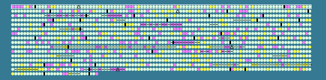 Elusimicrobium minutum Pei191, complete genome - 1..1643562 1529 proteins Pos %G+C SD Location Strand Length PID Gene Synonym Code Product 1 34.45 -1 8..364 + 118 187250424 - Emin_0001 - response regulator receiver protein 2 34.95 -1 556..1914 + 452 187250425 - Emin_0002 - chromosomal replication initiator protein DnaA 3 30.54 -2 2086..3195 + 369 187250426 - Emin_0003 - DNA polymerase III, beta subunit 4 34.68 -1 3195..3491 + 98 187250427 - Emin_0004 - hypothetical protein 5 41.44 0 3576..6053 + 825 187250428 - Emin_0005 - DNA gyrase, B subunit 6 44.39 +1 6138..8660 + 840 187250429 - Emin_0006 - DNA gyrase, A subunit 7 33.02 -1 8828..10114 + 428 187250430 - Emin_0007 - hypothetical protein 8 37.72 0 10136..10888 - 250 187250431 - Emin_0008 - hypothetical protein 9 41.49 0 11167..11742 + 191 187250432 - Emin_0009 - rubrerythrin 10 38.46 0 11837..12343 + 168 187250433 - Emin_0010 - redoxin domain-containing protein 11 40.66 0 12361..12756 + 131 187250434 - Emin_0011 - desulfoferrodoxin 12 40.15 0 12817..14019 + 400 187250435 - Emin_0012 - flavodoxin/nitric oxide synthase 13 36.53 0 14012..14512 + 166 187250436 - Emin_0013 - flavin reductase domain-containing protein 14 50.94 +2 14557..14715 + 52 187250437 - Emin_0014 - rubredoxin-type Fe(Cys)4 protein 15 45.70 +1 14923..15504 - 193 187250438 - Emin_0015 - Tfp pilus assembly protein PilE-like protein 16 38.56 0 15557..16531 - 324 187250439 - Emin_0016 - signal peptidase I 17 37.35 0 16533..17603 - 356 187250440 - Emin_0017 - glycosyl transferase group 1 18 37.79 0 17734..19191 + 485 187250441 - Emin_0018 - alpha amylase catalytic region 19 38.38 0 19230..20141 - 303 187250442 - Emin_0019 - Mg2 transporter protein CorA family protein 20 38.02 0 20308..21054 + 248 187250443 - Emin_0020 - purine phosphorylase family 1 21 41.80 0 21085..23445 - 786 187250444 - Emin_0021 - glycoside hydrolase family protein 22 41.76 0 23670..24998 + 442 187250445 - Emin_0022 - PhoH family protein 23 38.13 0 25155..26030 + 291 187250446 - Emin_0023 - integrase family protein 24 42.97 0 26032..26955 + 307 187250447 - Emin_0024 - cysteine synthase A 25 41.18 0 26938..28275 - 445 187250448 - Emin_0025 - TPR repeat-containing protein 26 38.04 0 28272..29078 - 268 187250449 - Emin_0026 - squalene/phytoene synthase 27 43.06 0 29112..29666 + 184 187250450 - Emin_0027 - metal dependent phophohydrolase 28 42.31 0 30205..32811 - 868 187250451 - Emin_0028 - alanyl-tRNA synthetase 29 38.53 0 32872..33198 + 108 187250452 - Emin_0029 - hypothetical protein 30 43.94 +1 33195..34061 + 288 187250453 - Emin_0030 - diacylglycerol kinase catalytic region 31 39.97 0 34104..34676 - 190 187250454 - Emin_0031 - hypothetical protein 32 43.46 0 34686..35801 - 371 187250455 - Emin_0032 - signal peptide peptidase SppA, 36K type 33 38.85 0 35930..36799 + 289 187250456 - Emin_0033 - dihydrodipicolinate synthase 34 41.12 0 36889..37620 + 243 187250457 - Emin_0034 - aspartate kinase 35 37.43 0 37617..38495 + 292 187250458 - Emin_0035 - aspartate-semialdehyde dehydrogenase 36 40.33 0 38495..39151 + 218 187250459 - Emin_0036 - dihydrodipicolinate reductase 37 41.11 0 39175..40602 + 475 187250460 - Emin_0037 - cytoplasmic peptidoglycan synthetase domain-containing protein 38 41.70 0 41030..41806 - 258 187250461 - Emin_0038 - hemolysin A 39 35.09 -1 41793..42020 - 75 187250462 - Emin_0039 - exonuclease VII small subunit 40 33.33 -1 42028..42498 - 156 187250463 - Emin_0040 - hypothetical protein 41 32.43 -2 42502..42942 - 146 187250464 - Emin_0041 - hypothetical protein 42 43.32 0 42942..44132 - 396 187250465 - Emin_0042 - exodeoxyribonuclease VII, large subunit 43 44.38 +1 44233..45228 - 331 187250466 - Emin_0043 - phosphate transporter 44 37.14 0 45237..45866 - 209 187250467 - Emin_0044 - hypothetical protein 45 41.77 0 46014..47684 + 556 187250468 - Emin_0045 - peptidase U62 modulator of DNA gyrase 46 38.07 0 47684..49288 + 534 187250469 - Emin_0046 - Zn-dependent protease-like protein 47 43.18 0 49347..50960 - 537 187250470 - Emin_0047 - hypothetical protein 48 42.57 0 52019..53989 + 656 187250471 - Emin_0049 - D-lactate dehydrogenase (cytochrome) 49 39.15 0 53982..55202 + 406 187250472 - Emin_0050 - Fe-S oxidoreductase-like protein 50 41.09 0 55168..56391 + 407 187250473 - Emin_0051 - metal dependent phosphohydrolase 51 42.29 0 56489..59089 + 866 187250474 - Emin_0052 - preprotein translocase, SecA subunit 52 42.06 0 59107..60768 + 553 187250475 - Emin_0053 - apolipoprotein N-acyltransferase 53 41.76 0 60761..61876 + 371 187250476 - Emin_0054 - peptide chain release factor 2 54 37.16 0 61901..62998 + 365 187250477 - Emin_0055 - oxygen-independent coproporphyrinogen III oxidase 55 34.04 -1 63000..63704 + 234 187250478 - Emin_0056 - hypothetical protein 56 43.92 +1 63771..64280 - 169 187250479 - Emin_0057 - hypothetical protein 57 41.95 0 64380..65876 + 498 187250480 - Emin_0058 - lysyl-tRNA synthetase 58 41.23 0 65939..66394 - 151 187250481 - Emin_0059 - Tfp pilus assembly protein PilE-like protein 59 40.10 0 66422..66805 - 127 187250482 - Emin_0060 - MazG nucleotide pyrophosphohydrolase 60 39.90 0 66823..68178 + 451 187250483 - Emin_0061 - hypothetical protein 61 42.21 0 68222..68908 + 228 187250484 - Emin_0062 - thymidylate synthase, flavin-dependent 62 41.25 0 68966..70177 + 403 187250485 - Emin_0063 - nucleotidyl transferase 63 40.11 0 70225..71154 + 309 187250486 - Emin_0064 - PhoH family protein 64 39.58 0 71151..71582 + 143 187250487 - Emin_0065 - hypothetical protein 65 41.35 0 71572..71883 - 103 187250488 - Emin_0066 - hypothetical protein 66 40.66 0 71943..72215 + 90 187250489 - Emin_0067 - glutamyl-tRNA(Gln) amidotransferase, C subunit 67 43.93 +1 72219..73643 + 474 187250490 - Emin_0068 - glutamyl-tRNA(Gln) amidotransferase, A subunit 68 43.69 +1 73643..74086 + 147 187250491 - Emin_0069 - NUDIX hydrolase 69 39.75 0 74118..75005 - 295 187250492 - Emin_0070 - hypothetical protein 70 37.91 0 75078..76343 + 421 187250493 - Emin_0071 - major facilitator transporter 71 36.41 -1 76398..7659