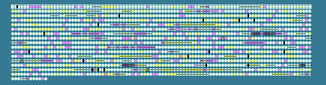 Helicobacter acinonychis str. Sheeba, complete genome - 1..1553927 1612 proteins Pos %G+C SD Location Strand Length PID Gene Synonym Code Product 1 39.63 0 1..1350 + 449 109946641 dnaA Hac_0001 - chromosomal replication initiation protein 2 36.33 0 1575..3011 + 478 109946642 - Hac_0002 - hypothetical protein 3 37.05 0 3162..3914 + 250 109946643 exoA Hac_0003 - exodeoxyribonuclease 4 39.31 0 3911..4546 - 211 109946644 - Hac_0004 - hypothetical protein 5 35.31 0 4550..4903 - 117 109946645 - Hac_0005 - hypothetical protein 6 36.17 0 5021..6886 + 621 109946646 recG Hac_0006 - ATP-dependent DNA helicase 7 32.18 -1 6937..8328 + 463 109946647 mod fragment 1 - COG2189L type III restriction-modification system methylation subunit fragment 1 8 33.84 -1 8325..8915 + 196 109946648 mod fragment 2 - COG2189L type III restriction-modification system methylation subunit fragment 2 9 33.95 -1 8916..11840 + 974 109946649 res Hac_0009 - type III restriction enzyme 10 31.60 -1 12025..13122 + 365 109946650 ECO57IR fragment 1 - COG1002V putative type II DNA modification enzyme (methyltransferase) fragment 1 11 39.19 0 13240..15798 + 852 109946651 ECO57IR fragment 2 - COG1002V putative type II DNA modification enzyme (methyltransferase) fragment 2 12 37.21 0 16548..17321 - 257 109946652 trpA Hac_0013 - tryptophan synthase subunit alpha 13 43.06 +1 17333..18514 - 393 109946653 trpB Hac_0014 - tryptophan synthase subunit beta 14 36.94 0 18516..19874 - 452 162139481 trpC Hac_0015 - bifunctional indole-3-glycerol phosphate synthase/phosphoribosylanthranilate isomerase 15 40.08 0 19867..20874 - 335 109946655 trpD Hac_0016 - anthranilate phosphoribosyltransferase 16 39.80 0 20871..21458 - 195 109946656 trpG Hac_0017 - anthranilate synthase component II 17 38.86 0 21455..22957 - 500 109946657 trpE Hac_0018 - anthranilate synthase component I 18 36.70 0 23101..23901 - 266 109946658 fragment 2 Hac_0019 COG2194R hypothetical protein 19 37.78 0 23963..24772 - 269 109946659 fragment 1 Hac_0020 COG2194R hypothetical protein 20 35.33 0 24784..25887 - 367 109946660 rfaJ Hac_0021 - lipopolysaccharide biosynthesis protein 21 37.20 0 25891..26691 - 266 109946661 miaA Hac_0022 - tRNA delta(2)-isopentenylpyrophosphate transferase 22 34.80 0 26792..27133 - 113 109946662 - Hac_0023 - hypothetical protein 23 35.79 0 27193..27639 + 148 109946663 - Hac_0024 - 7-cyano-7-deazaguanine reductase 24 34.25 -1 32725..33159 - 144 109946664 - Hac_0029 - hypothetical protein 25 39.29 0 33765..34772 - 335 109946665 llm Hac_0030 - methicillin resistance protein 26 37.01 0 34902..35690 + 262 109946666 pdxJ Hac_0031 - pyridoxal phosphate biosynthetic protein PdxJ 27 40.94 0 35692..36624 + 310 109946667 pdxA Hac_0032 - 4-hydroxythreonine-4-phosphate dehydrogenase 28 36.18 0 36694..37080 + 128 109946668 fragment 1 Hac_0033 COG1106R hypothetical protein 29 36.23 0 37047..37391 + 114 109946669 fragment 2 Hac_0034 - hypothetical protein 30 39.72 0 37610..37750 - 46 109946670 omp1 fragment 4 - - outer membrane protein 1 fragment 4 31 42.89 +1 37807..38277 - 156 109946671 omp1 fragment 3 - - outer membrane protein 1 fragment 3 32 45.24 +1 38337..38546 - 69 109946672 omp1 fragment 2 - - outer membrane proteine 1 fragment 2 33 43.01 +1 38662..39033 - 123 109946673 omp1 fragment 1 - COG0840NT outer membrane protein 1 fragment 1 34 42.54 +1 39328..40608 - 426 109946674 gltA Hac_0040 - type II citrate synthase 35 42.02 +1 40811..42088 + 425 109946675 icdA Hac_0041 - isocitrate dehydrogenase 36 40.66 0 42133..42651 + 172 109946676 - Hac_0042 - hypothetical protein 37 35.92 0 42628..43284 - 218 109946677 bioD Hac_0043 - hypothetical protein 38 35.51 0 43392..43805 + 137 109946678 - Hac_0044 - hypothetical protein 39 40.58 0 43807..44082 + 91 109946679 - Hac_0045 - hypothetical protein 40 39.59 0 44082..46301 + 739 109946680 clpA Hac_0046 - ATP-dependent Clp protease, ATP-binding subunit ClpA 41 39.82 0 46303..46641 + 112 109946681 panD Hac_0047 - aspartate alpha-decarboxylase 42 36.73 0 46652..46945 + 97 109946682 - Hac_0048 - hypothetical protein 43 37.45 0 46945..47940 + 331 109946683 - Hac_0049 - hypothetical protein 44 37.56 0 47948..49012 + 354 109946684 - Hac_0050 - hypothetical protein 45 39.52 0 49172..49915 + 247 109946685 comB1 Hac_0052 - ComB1 protein 46 33.54 -1 49915..50865 + 316 109946686 comB2 Hac_0053 - ComB2 protein 47 40.19 0 50858..51994 + 378 109946687 comB3 Hac_0054 - ComB3 protein 48 38.52 0 52044..53471 + 475 109946688 algA Hac_0055 - mannose-6-phosphate isomerase / mannose-1-phosphate guanylyltransferase 49 40.23 0 53481..54626 + 381 109946689 gmd Hac_0056 - hypothetical protein 50 39.55 0 54619..55551 + 310 109946690 wbcJ Hac_0057 - GDP-fucose synthetase, putative 51 39.25 0 56017..56844 - 275 109946691 tyrA Hac_0058 - prephenate dehydrogenase 52 40.10 0 56846..59341 - 831 109946692 lon Hac_0059 - ATP-dependent protease La 53 37.16 0 59382..60035 - 217 109946693 comL Hac_0060 - competence lipoprotein 54 37.18 0 60252..60641 + 129 109946694 - Hac_0061 - flagellar assembly protein FliW 55 41.93 0 60812..61288 + 158 109946695 fabZ Hac_0062 - (3R)-hydroxymyristoyl-ACP dehydratase 56 40.84 0 61291..62103 + 270 109946696 lpxA Hac_0063 - UDP-N-acetylglucosamine acyltransferase 57 40.20 0 62105..63415 + 436 109946697 clpX Hac_0064 - ATP-dependent protease ATP-binding subunit 58 44.54 +1 63468..64511 + 347 109946698 mreB Hac_0065 - rod shape-determining protein MreB 59 36.68 0 64516..65262 + 248 109946699 mreC Hac_0066 - rod shape-determining protein 60 33.52 -1 65307..66404 + 365 109946700 fragment 1 Hac_0067 COG2194R putative metal-dependent hydrolase fragment 1 61 33.33 -1 66385..66969 + 194 109946701 fragment 2 Hac_0068 COG2194R putative metal-dependent hydrolase fragment 2 62 37.79 0 67196..68383 - 395 109946702 nusA Hac_0069 - transcription elongation factor NusA 63 35.54 0 68449..69627 - 392 109946703 selA Hac_0070 - selenocysteine synthase 64 43.83 +1 69844..72435 - 863 109946704 frpB Hac_0072 - iron-regulated outer membrane protein 65 37