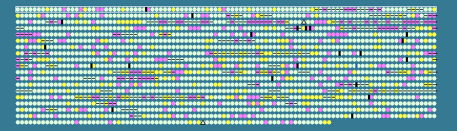 Helicobacter hepaticus ATCC 51449, complete genome - 1..1799146 1875 proteins Pos %G+C SD Location Strand Length PID Gene Synonym Code Product 1 36.09 0 141..2423 + 760 32265500 - HH0001 - hypothetical protein 2 37.05 0 2484..3989 + 501 32265501 trpC HH0002 - phosphoribosylanthranilate isomerase 3 35.91 0 3986..5032 + 348 32265502 - HH0003 - hypothetical protein 4 32.79 0 5053..5607 - 184 32265503 - HH0004 - hypothetical protein 5 34.57 0 5633..6196 - 187 32265504 - HH0005 - hypothetical protein 6 37.02 0 6282..6905 - 207 32265505 rnhB HH0006 - ribonuclease HII 7 37.77 0 7073..7681 - 202 32265506 hopZ HH0007 - hypothetical protein 8 39.94 +1 7845..8888 - 347 32265507 obgE HH0008 - GTPase ObgE 9 39.15 0 9016..9273 - 85 32265508 rpmA HH0009 - 50S ribosomal protein L27 10 36.19 0 9290..9604 - 104 32265509 rplU HH0010 - 50S ribosomal protein L21 11 35.51 0 9758..10585 + 275 32265510 - HH0011 - hypothetical protein 12 32.16 -1 10571..11254 - 227 32265511 - HH0012 - hypothetical protein 13 37.04 0 11394..13283 + 629 32265512 gidA HH0013 - tRNA uridine 5-carboxymethylaminomethyl modification enzyme GidA 14 37.80 0 13308..13934 + 208 32265513 - HH0014 - hypothetical protein 15 36.40 0 13936..15108 + 390 32265514 ygiC HH0015 - hypothetical protein 16 31.74 -1 15102..16670 - 522 32265515 - HH0016 - hypothetical protein 17 41.16 +1 16692..18134 - 480 32265516 - HH0017 - aspartate oxidase 18 35.29 0 18344..18802 + 152 32265517 - HH0018 - hypothetical protein 19 34.62 0 18792..20657 + 621 32265518 uvrC HH0019 - excinuclease ABC subunit C 20 30.56 -1 20820..22151 + 443 32265519 - HH0020 - hypothetical protein 21 31.98 -1 22148..23623 + 491 32265520 - HH0021 - two-component sensor histidine kinase family protein 22 35.11 0 23613..24287 + 224 32265521 - HH0022 - two-component response regulator family protein 23 39.06 0 24450..25742 + 430 32265522 rho HH0023 - transcription termination factor Rho 24 39.25 0 25751..26494 + 247 32265523 murI HH0024 - glutamate racemase 25 34.70 0 26504..28696 - 730 32265524 - HH0025 - hypothetical protein 26 39.82 +1 28808..30766 - 652 32265525 tktA HH0026 - transketolase 27 36.70 0 30801..33206 - 801 32265526 pheT HH0027 - phenylalanyl-tRNA synthetase subunit beta 28 37.03 0 33206..34207 - 333 32265527 pheS HH0028 - phenylalanyl-tRNA synthetase subunit alpha 29 36.84 0 34349..34690 + 113 32265528 - HH0029 - HIT hydrolase family protein 30 35.56 0 34762..35346 + 194 32265529 tehB HH0030 - hypothetical protein 31 38.77 0 35415..36701 + 428 32265530 - HH0031 - hypothetical protein 32 25.57 -2 37157..37594 - 145 32265531 - HH0032 - hypothetical protein 33 35.20 0 37606..39801 - 731 32265532 feoB HH0033 - ferrous ion uptake system protein 34 38.00 0 39885..41126 - 413 32265533 - HH0034 - hypothetical protein 35 37.89 0 41136..41969 - 277 32265534 panC HH0035 - pantoate--beta-alanine ligase 36 36.47 0 42006..42707 - 233 32265535 pyrF HH0036 - orotidine 5'-phosphate decarboxylase 37 38.61 0 42708..43181 - 157 32265536 nusB HH0037 - transcription antitermination protein NusB 38 39.49 +1 43192..43662 - 156 32265537 ribH HH0038 - riboflavin synthase subunit beta 39 38.62 0 43692..44504 - 270 32265538 kdsA HH0039 - 2-dehydro-3-deoxyphosphooctonate aldolase 40 36.11 0 44515..45162 - 215 32265539 icfA HH0040 - carbonic anhydrase 41 33.48 0 45310..45990 + 226 32265540 - HH0041 - hypothetical protein 42 35.85 0 46021..46497 - 158 32265541 yahD HH0042 - ankyrin repeat-containing protein 43 37.44 0 46498..47934 - 478 32265542 katA HH0043 - catalase 44 35.90 0 48104..48688 + 194 32265543 ribA HH0044 - GTP cyclohydrolase II 45 37.57 0 48725..49975 + 416 32265544 moeA_1 HH0045 - molybdopterin biosynthesis enzyme 46 43.56 +2 50021..50245 + 74 32265545 moaD HH0046 - molybdopterin converting factor 47 38.40 0 50233..50706 + 157 32265546 moaE HH0047 - molybdopterin converting factor 48 35.28 0 50690..51253 + 187 32265547 mobB HH0048 - molybdopterin-guanine dinucleotide biosynthesis protein MobB 49 39.63 +1 51253..51792 + 179 32265548 mogA HH0049 - molybdenum cofactor biosynthesis protein 50 30.36 -1 51968..55228 + 1086 32265549 - HH0050 - hypothetical protein 51 38.28 0 55394..56263 - 289 32265550 - HH0051 - hypothetical protein 52 38.96 0 56477..56956 + 159 32265551 moaC HH0052 - molybdenum cofactor biosynthesis protein C 53 35.81 0 56957..58327 + 456 32265552 - HH0053 - hypothetical protein 54 34.72 0 58324..59910 - 528 32265553 - HH0054 - hypothetical protein 55 34.91 0 59970..60287 - 105 32265554 trxA_2 HH0055 - thioredoxin 56 42.64 +1 60643..61803 + 386 32265555 hyaA HH0056 - Ni/Fe hydrogenase beta subunit 57 38.71 0 61814..63544 + 576 32265556 hyaB HH0057 - Ni/Fe hydrogenase alpha subunit 58 35.03 0 63555..64319 + 254 32265557 hyaC HH0058 - Ni/Fe hydrogenase cytochrome b subunit 59 37.78 0 64327..64866 + 179 32265558 hyaD HH0059 - hydrogenase formation/expression protease HyaD/HupD 60 36.40 0 64863..66656 + 597 32265559 - HH0060 - hypothetical protein 61 36.06 0 66709..67479 + 256 32265560 - HH0061 - hypothetical protein 62 39.41 +1 67490..68641 + 383 32265561 metB HH0062 - cystathionine gamma-synthase 63 38.22 0 68643..69584 + 313 32265562 cysK_1 HH0063 - cysteine synthase 64 33.72 0 69562..70341 - 259 32265563 - HH0064 - hypothetical protein 65 33.33 0 70335..70496 - 53 32265564 - HH0065 - hypothetical protein 66 36.08 0 70592..71065 + 157 32265565 - HH0066 - hypothetical protein 67 36.78 0 71217..71825 + 202 32265566 - HH0067 - hypothetical protein 68 35.64 0 71863..72771 - 302 32265567 - HH0068 - hypothetical protein 69 37.95 0 72768..73244 - 158 32265568 - HH0069 - alpha-1,2-fucosyltransferase fragment 70 32.89 0 73214..73666 - 150 32265569 - HH0070 - alpha-1,2-fucosyltransferase fragment 71 43.53 +2 73683..74780 - 365 32265570 - HH0071 - hypothetical protein 72 40.08 +1 74801..75763 - 320 32265571 - HH0072 - hypothetical protein 73 35.90 0 75766..76854 - 362 32265572 - HH0073 - hypothetical protein 74 30.17 -1 76926..77558 - 210 32265573 cfa HH0074 - hypothetical protein 75 36.50 0 