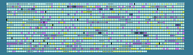 Lactobacillus sakei subsp. sakei 23K, complete genome - 1..1884661 1879 proteins Pos %G+C SD Location Strand Length PID Gene Synonym Code Product 1 42.76 0 210..1556 + 448 81427617 dnaA LSA0001 - chromosomal replication initiation protein A 2 41.49 0 1734..2873 + 379 81427618 dnaN LSA0002 - DNA-directed DNA polymerase III, beta subunit 3 41.67 0 3116..3343 + 75 81427619 - LSA0003 - hypothetical protein 4 42.91 0 3350..4477 + 375 81427620 recF LSA0004 - recombination protein F 5 43.80 0 4514..6490 + 658 81427621 gyrB LSA0005 - DNA gyrase, B subunit 6 44.52 0 6538..9111 + 857 81427622 gyrA LSA0006 - DNA gyrase, A subunit 7 36.70 -1 9348..9644 + 98 81427623 rpsF LSA0007 - 30S ribosomal protein S6 8 42.30 0 9683..10195 + 170 81427624 ssb LSA0008 - single-stranded DNA binding protein (Ssb) 9 42.92 0 10226..10465 + 79 81427625 rpsR LSA0009 - 30S ribosomal protein S18 10 44.10 0 10683..12716 + 677 81427626 - LSA0010 - putative nucleotide-binding phosphoesterase 11 41.28 0 12737..13189 + 150 81427627 rplI LSA0011 - 50S ribosomal protein L9 12 44.52 0 13323..14717 + 464 81427628 dnaC LSA0012 - replicative DNA helicase C 13 44.82 0 15068..16408 - 446 81427629 - LSA0013 - putative nucleobase: cation symporter 14 41.97 0 16777..17517 + 246 81427630 gidB LSA0014 - glucose-inhibited division protein B 15 39.44 0 17517..18416 + 299 81427631 parB1 LSA0015 - chromosome partitioning protein, DNA-binding exonuclease 16 40.49 0 18428..19195 + 255 81427632 parA LSA0016 - chromosome partitioning ATPase 17 43.26 0 19185..20060 + 291 81427633 parB2 LSA0017 - chromosome partitioning protein, DNA-binding exonuclease 18 42.57 0 20079..20327 + 82 81427634 - LSA0018 - hypothetical protein 19 43.78 0 20351..21451 + 366 81427635 - LSA0019 - translation-associated GTPase 20 41.33 0 21469..22143 + 224 81427636 - LSA0020 - integral membrane protein 21 44.71 0 22180..22944 + 254 81427637 - LSA0021 - putative lipase/esterase 22 42.45 0 23325..23993 + 222 81427638 - LSA0022 - haloacid dehalogenase family hydrolase 23 43.80 0 23990..24457 - 155 81427639 - LSA0023 - hypothetical protein 24 42.74 0 25476..26102 - 208 81427641 - LSA0025 - hypothetical protein 25 38.29 0 26115..26558 - 147 81427642 - LSA0026 - hypothetical protein 26 37.98 -1 26675..27040 + 121 81427643 - LSA0027 - hypothetical protein 27 44.60 0 27150..28010 + 286 81427644 - LSA0028 - hypothetical protein 28 41.82 0 28058..29401 - 447 81427645 - LSA0029 - hemolysinC family Mg(2+)/Co(2+) transport protein 29 44.37 0 29633..30484 - 283 81427646 - LSA0030 - putative aldo/keto reductase (oxidoreductase) 30 46.31 +1 30568..31800 - 410 81427647 - LSA0031 - hypothetical protein 31 39.62 0 31874..32239 - 121 81427648 - LSA0032 - hypothetical protein 32 48.51 +2 32333..33472 - 379 81427649 - LSA0033 - MFS family transporter 33 46.98 +1 33536..34693 - 385 81427650 - LSA0035 - putative Iron-sulfur cluster-binding protein 34 44.87 +1 34718..35506 - 262 81427651 - LSA0036 - putative serine/tyrosine protein phosphatase 35 42.12 0 35628..36572 + 314 81427652 - LSA0037 - putative ion Mg(2+)/Co(2+) transport protein 36 37.47 -1 36678..37160 + 160 81427653 usp5 LSA0038 - universal stress protein UspA family protein 37 47.07 +1 37243..37788 + 181 81427654 tag1 LSA0039 - 3-methyl-adenine DNA glycosylase I 38 38.38 0 37871..38365 + 164 81427655 - LSA0040 - hypothetical protein 39 46.11 +1 38535..39473 + 312 81427656 panE LSA0041 - 2-dehydropantoate 2-reductase 40 40.38 0 39487..39954 + 155 81427657 usp1 LSA0042 - universal stress protein UspA family protein 41 46.64 +1 40035..40763 + 242 81427658 - LSA0043 - integral membrane protein 42 41.67 0 40849..41064 + 71 81427659 - LSA0044 - hypothetical protein 43 41.84 0 41152..42339 - 395 81427660 cfa LSA0045 - cyclopropane-fatty-acyl-phospholipid synthase 44 40.34 0 42504..43517 + 337 81427661 - LSA0046 - putative transport protein 45 43.09 0 43574..43819 - 81 81427662 - LSA0047 - hypothetical protein 46 37.37 -1 43989..44186 + 65 81427663 - LSA0048 - hypothetical protein 47 40.74 0 44293..45345 - 350 81427664 ddl LSA0049 - D-alanine--D-alanine ligase (D-alanylalanine synthetase) 48 39.00 0 45540..45980 + 146 81427665 - LSA0050 - Hsp20 family heat-shock protein 49 43.59 0 46103..46999 + 298 81427666 - LSA0051 - putative Na(+) ABC exporter, ATP-binding subunit 50 41.04 0 46992..48236 + 414 81427667 - LSA0052 - putative Na(+) ABC exporter, membrane-spanning/permease subunit 51 42.41 0 48377..50272 + 631 81427668 pepO LSA0053 - endopeptidase O 52 45.95 +1 50525..51142 + 205 81427669 maa LSA0054 - maltose O-acetyltransferase (maltose transacetylase) 53 42.50 0 51132..52298 - 388 81427670 - LSA0055 - putative thiamine/thiamine precursor:cation symporter 54 44.00 0 52288..52962 - 224 81427671 thiE LSA0057 - thiamine-phosphate pyrophosphorylase (thiamine-phosphate synthase) 55 48.71 +2 52955..53767 - 270 81427672 thiD LSA0058 - phosphomethylpyrimidine kinase (HMP-phosphate kinase) 56 46.42 +1 53760..54569 - 269 81427673 thiM LSA0059 - hydroxyethylthiazole kinase 57 43.49 0 54975..56993 + 672 81427674 nagE LSA0060 - N-acetylglucosamine and glucose-specific phosphotransferase system, enzyme IIABC 58 39.37 0 57053..57997 - 314 81427675 - LSA0061 - extracellular protein precursor 59 43.34 0 58097..59245 - 382 81427676 - LSA0062 - integral membrane protein 60 41.61 0 59513..60793 + 426 81427677 purA LSA0063 - adenylosuccinate synthetase 61 42.64 0 60964..62274 + 436 81427678 - LSA0064 - putative nucleobase:cation symporter 62 43.57 0 62398..62856 + 152 81427679 - LSA0065 - integral membrane protein 63 40.87 0 62931..63593 + 220 81427680 srtA1 LSA0066 - putative surface protein transpeptidase 1 precursor (sortase 1) 64 38.76 0 63798..64829 + 343 81427681 - LSA0067 - putrescine carbamoyltransferase 65 41.79 0 64869..65849 + 326 81427682 - LSA0068 - putative amino acid/polyamine antiporter (N-terminal fragment), authentic frameshift 66 39.39 0 65735..66229 + 164 81427683 - LSA0069 - putative amino acid/polyamine antiporter (C-terminal fragment), authe