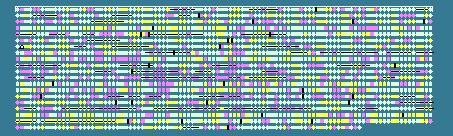Prochlorococcus marinus str. MIT 9215, complete genome - 1..1738790 1983 proteins Pos %G+C SD Location Strand Length PID Gene Synonym Code Product 1 30.05 0 169..1326 + 385 157412339 dnaN P9215_00001 - DNA polymerase III subunit beta 2 27.68 0 1328..2035 + 235 157412340 - P9215_00011 - hypothetical protein 3 32.69 0 2039..4378 + 779 157412341 purL P9215_00021 - phosphoribosylformylglycinamidine synthase II 4 33.06 0 4426..5886 + 486 157412342 purF P9215_00031 - amidophosphoribosyltransferase 5 27.64 0 5883..8324 - 813 157412343 gyrA P9215_00041 - DNA gyrase/topoisomerase IV, subunit A 6 27.55 0 8402..9265 - 287 157412344 - P9215_00051 - TPR-repeat pilus assembly protein TadD 7 29.99 0 9262..10218 - 318 157412345 - P9215_00061 - hypothetical protein 8 33.61 0 10363..11097 + 244 157412346 - P9215_00071 - hypothetical protein 9 29.35 0 11101..11727 + 208 157412347 nusB P9215_00081 - transcription antitermination protein NusB 10 33.25 0 11786..13015 + 409 157412348 ftsY P9215_00091 - signal recognition particle docking protein FtsY 11 28.36 0 13161..14426 + 421 157412349 rsbU P9215_00101 - protein phosphatase 2C domain-containing protein 12 31.67 0 14488..15867 + 459 157412350 argH P9215_00111 - argininosuccinate lyase 13 48.84 +2 15983..16627 + 214 157412351 - P9215_00121 - RNA recognition motif-containing protein 14 31.34 0 16624..17628 - 334 157412352 - P9215_00131 - tRNA-dihydrouridine synthase A 15 34.14 0 17650..18144 + 164 157412353 - P9215_00141 - peptide methionine sulfoxide reductase domain-containing protein 16 31.67 0 18219..18938 + 239 157412354 grpE P9215_00151 - heat shock protein GrpE 17 38.56 +1 18968..20095 + 375 157412355 dnaJ P9215_00161 - DnaJ protein 18 25.11 -1 20095..20325 + 76 157412356 - P9215_00171 - hypothetical protein 19 26.69 -1 20315..21232 + 305 157412357 - P9215_00181 - GTPase 20 31.05 0 21198..21548 - 116 157412358 - P9215_00191 - hypothetical protein 21 29.08 0 21567..22460 - 297 157412359 murB P9215_00201 - UDP-N-acetylenolpyruvoylglucosamine reductase 22 28.36 0 22477..23883 - 468 157412360 murC P9215_00211 - UDP-N-acetylmuramate-alanine ligase 23 36.07 +1 24077..25099 + 340 157412361 gap2 P9215_00221 - glyceraldehyde 3-phosphate dehydrogenase(NADP+)(phosphorylating) 24 29.58 0 25100..26086 - 328 157412362 thiL P9215_00231 - putative thiamine-monophosphate kinase 25 34.07 0 26079..27170 - 363 157412363 ppiB P9215_00241 - cyclophilin-type peptidyl-prolyl cis-trans isomerase 26 38.50 +1 27214..27774 + 186 157412364 efp P9215_00251 - elongation factor P 27 35.31 0 27774..28280 + 168 157412365 accB P9215_00261 - biotin carboxyl carrier protein 28 33.33 0 28257..29291 - 344 157412366 pdxA P9215_00271 - 4-hydroxythreonine-4-phosphate dehydrogenase 29 31.51 0 29315..30193 - 292 157412367 wcaG P9215_00281 - nucleoside-diphosphate-sugar epimerase 30 36.09 +1 30457..30855 - 132 157412368 - P9215_00291 - HNH endonuclease 31 31.11 0 31020..31469 - 149 157412369 - P9215_00301 - type II secretion system protein-like protein 32 37.43 +1 31527..32039 - 170 157412370 - P9215_00311 - hypothetical protein 33 32.32 0 32173..32370 + 65 157412371 - P9215_00321 - hypothetical protein 34 34.19 0 32372..33535 - 387 157412372 dhsS P9215_00331 - soluble hydrogenase small subunit 35 28.84 0 33596..34708 + 370 157412373 cbiD P9215_00341 - cobalt-precorrin-6A synthase 36 33.52 0 34763..36349 + 528 157412374 guaA P9215_00351 - bifunctional GMP synthase/glutamine amidotransferase protein 37 37.24 +1 36707..37780 + 357 157412375 mreB P9215_00361 - Actin-like ATPase involved in cell morphogenesis 38 30.28 0 37824..38150 - 108 157412376 - P9215_00371 - hypothetical protein 39 24.92 -1 38132..38428 - 98 157412377 - P9215_00381 - hypothetical protein 40 31.28 0 38437..39750 - 437 157412378 murA P9215_00391 - UDP-N-acetylglucosamine enolpyruvyl transferase 41 26.82 -1 39754..40014 - 86 157412379 - P9215_00401 - hypothetical protein 42 30.53 0 40028..40348 - 106 157412380 - P9215_00411 - hypothetical protein 43 28.77 0 40545..40895 + 116 157412381 - P9215_00421 - hypothetical protein 44 31.65 0 40899..41195 + 98 157412382 - P9215_00431 - hypothetical protein 45 31.98 0 41205..41942 - 245 157412383 - P9215_00441 - hypothetical protein 46 28.15 0 42412..43125 + 237 157412384 - P9215_00451 - hypothetical protein 47 30.05 0 43203..43811 + 202 157412385 - P9215_00461 - hypothetical protein 48 18.75 -2 43922..44065 + 47 157412386 - P9215_00471 - hypothetical protein 49 32.79 0 44221..45867 + 548 157412387 - P9215_00481 - putative penicillin-binding protein 50 29.90 0 45889..46413 - 174 157412388 - P9215_00491 - putative reductase 51 32.83 0 46431..48233 - 600 157412389 - P9215_00501 - flavoprotein 52 28.57 0 48440..48586 - 48 157412390 - P9215_00511 - hypothetical protein 53 36.94 +1 48969..49412 + 147 157412391 - P9215_00521 - hypothetical protein 54 35.08 0 49588..51363 - 591 157412392 - P9215_00531 - flavoprotein 55 32.62 0 51483..54143 + 886 157412393 alaS P9215_00541 - alanyl-tRNA synthetase 56 29.17 0 54128..56074 - 648 157412394 speA P9215_00551 - arginine decarboxylase 57 35.95 +1 56196..56654 + 152 157412395 ndk P9215_00561 - nucleoside diphosphate kinase 58 31.08 0 56658..57767 - 369 157412396 dadA P9215_00571 - putative thiamine biosynthesis oxidoreductase 59 32.37 0 57874..59319 + 481 157412397 gatB P9215_00581 - aspartyl/glutamyl-tRNA amidotransferase subunit B 60 26.38 -1 59324..59941 - 205 157412398 coaE P9215_00591 - putative dephospho-CoA kinase 61 32.61 0 60017..61255 + 412 157412399 argJ P9215_00601 - bifunctional ornithine acetyltransferase/N-acetylglutamate synthase protein 62 40.03 +1 61575..62246 - 223 157412400 - P9215_00611 - ATPase involved in chromosome partitioning 63 30.63 0 62397..63359 + 320 157412401 tas P9215_00621 - aldo/keto reductase family protein 64 22.46 -2 63368..63505 - 45 157412402 - P9215_00631 - hypothetical protein 65 29.24 0 63985..65109 + 374 157412403 - P9215_00641 - RNA methylase family protein 66 30.49 0 65111..65497 - 128 157412404 - P9215_00651 - 