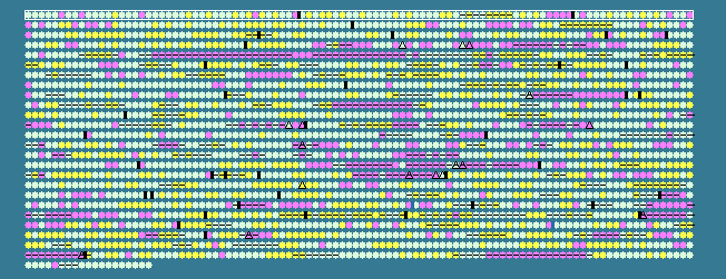 Synechococcus sp. WH 8102, complete genome - 1..2434428 2519 proteins Pos %G+C SD Location Strand Length PID Gene Synonym Code Product 1 60.88 0 174..1331 + 385 33864540 dnaN SYNW0001 - DNA polymerase III subunit beta 2 62.81 0 1333..2058 + 241 33864541 - SYNW0002 - hypothetical protein 3 62.20 0 2103..4409 + 768 33864542 purL SYNW0003 - phosphoribosylformylglycinamidine synthase II 4 59.56 0 4393..5898 + 501 33864543 purF SYNW0004 - amidophosphoribosyltransferase 5 60.40 0 5899..8373 - 824 33864544 - SYNW0005 - putative DNA topoisomerase chain A 6 54.42 0 8419..9300 - 293 33864545 - SYNW0006 - hypothetical protein 7 60.46 0 9319..10284 - 321 33864546 - SYNW0007 - hypothetical protein 8 59.07 0 10334..10978 + 214 33864547 - SYNW0008 - hypothetical protein 9 55.24 0 11028..11762 + 244 33864548 - SYNW0009 - hypothetical protein 10 59.75 0 11766..12401 + 211 33864549 nusB SYNW0010 - transcription antitermination protein NusB 11 60.01 0 12401..13858 + 485 33864550 ftsY SYNW0011 - signal recognition particle docking protein FtsY 12 60.41 0 13895..15316 + 473 33864551 - SYNW0012 - hypothetical protein 13 58.40 0 15337..16752 + 471 33864552 argH SYNW0013 - argininosuccinate lyase 14 66.82 +1 16879..17523 + 214 33864553 - SYNW0014 - RNA recognition motif-containing protein 15 62.84 0 17529..18521 - 330 33864554 - SYNW0015 - tRNA-dihydrouridine synthase A 16 58.97 0 18563..19069 + 168 33864555 - SYNW0016 - hypothetical protein 17 61.58 0 19080..20318 + 412 33864556 - SYNW0017 - hypothetical protein 18 54.47 0 20293..21366 - 357 33864557 pilC SYNW0018 - pili biogenesis protein 19 58.97 0 22538..24409 - 623 33864558 gspE1 SYNW0022 - general secretion pathway protein E 20 59.82 0 24509..25165 + 218 33864559 grpE SYNW0023 - putative heat shock protein GrpE 21 62.87 0 25165..26298 + 377 33864560 dnaJ SYNW0024 - DnaJ protein 22 61.90 0 26298..26528 + 76 33864561 - SYNW0025 - hypothetical protein 23 61.11 0 26535..27434 + 299 33864562 - SYNW0026 - hypothetical protein 24 60.82 0 27409..27750 - 113 33864563 - SYNW0027 - hypothetical protein 25 63.67 0 27775..28674 - 299 33864564 murB SYNW0028 - UDP-N-acetylenolpyruvoylglucosamine reductase 26 62.04 0 28674..30077 - 467 33864565 murC SYNW0029 - UDP-N-acetylmuramate-alanine ligase 27 59.84 0 30250..31275 + 341 33864566 gap2 SYNW0030 - glyceraldehyde 3-phosphate dehydrogenase (NADP+) 28 65.15 0 31341..32327 - 328 33864567 thiL SYNW0031 - putative thiamine monophosphate kinase 29 60.36 0 32324..33433 - 369 33864568 - SYNW0032 - putative cyclophilin-type peptidyl-prolyl cis-trans isomerase 30 59.04 0 33466..34029 + 187 33864569 efp SYNW0033 - elongation factor P 31 62.45 0 34026..34499 + 157 33864570 accB SYNW0034 - biotin carboxyl carrier protein (BCCP) subunit of acetyl-CoA carboxylase 32 63.73 0 34496..35518 - 340 33864571 pdxA SYNW0035 - 4-hydroxythreonine-4-phosphate dehydrogenase 33 57.06 0 35524..35700 + 58 33864572 - SYNW0036 - hypothetical protein 34 64.13 0 35685..36590 - 301 33864573 - SYNW0037 - hypothetical protein 35 55.22 0 36800..37201 - 133 33864574 - SYNW0038 - HNH endonuclease:HNH nuclease 36 64.26 0 37349..38968 + 539 33864575 - SYNW0039 - helicase 37 61.03 0 39293..39718 - 141 33864576 - SYNW0040 - hypothetical protein 38 67.06 +1 39765..40268 - 167 33864577 - SYNW0041 - hypothetical protein 39 59.70 0 40277..40678 + 133 33864578 - SYNW0042 - hypothetical protein 40 57.58 0 40717..40947 + 76 33864579 - SYNW0043 - hypothetical protein 41 50.48 -1 41017..41226 + 69 33864580 - SYNW0044 - hypothetical protein 42 62.84 0 41347..42573 - 408 33864581 DHSS SYNW0045 - soluble hydrogenase small subunit 43 65.82 0 42588..43655 + 355 33864582 cbiD SYNW0046 - cobalt-precorrin-6A synthase 44 61.94 0 43692..45278 + 528 33864583 guaA SYNW0047 - bifunctional GMP synthase/glutamine amidotransferase protein 45 64.05 0 45331..45942 + 203 33864584 - SYNW0048 - hypothetical protein 46 63.91 0 45952..46314 + 120 33864585 - SYNW0049 - hypothetical protein 47 62.70 0 46318..48105 + 595 33864586 - SYNW0050 - putative penicillin-binding protein 48 64.22 0 48109..49254 - 381 33864587 sqdX SYNW0051 - SqdX 49 61.74 0 49268..50464 - 398 33864588 sqdB SYNW0052 - sulfolipid (UDP-sulfoquinovose) biosynthesis protein 50 62.07 0 50538..50711 - 57 33864589 - SYNW0053 - high light-inducible protein 51 64.00 0 50807..51631 - 274 33864590 thiG SYNW0054 - thiazole synthase 52 59.42 0 51683..52234 + 183 33864591 - SYNW0055 - hypothetical protein 53 56.78 0 52258..52773 - 171 33864592 - SYNW0056 - hypothetical protein 54 62.36 0 52783..53130 - 115 33864593 rplT SYNW0057 - 50S ribosomal protein L20 55 61.62 0 53171..53368 - 65 33864594 rpmI SYNW0058 - 50S ribosomal protein L35 56 67.44 +1 53427..54974 + 515 33864595 - SYNW0059 - amidase enhancer 57 63.19 0 54999..56321 + 440 33864596 - SYNW0060 - putative glycosyltransferase 58 65.26 0 56384..58165 - 593 33864597 dnaX SYNW0061 - DNA polymerase, gamma and tau subunits 59 62.91 0 58189..58827 - 212 33864598 - SYNW0062 - hypothetical protein 60 62.22 0 58846..60195 - 449 33864599 clpX SYNW0063 - ATP-dependent protease ATP-binding subunit 61 62.81 0 60277..60951 - 224 33864600 clpP2 SYNW0064 - ATP-dependent Clp protease proteolytic subunit 2 62 63.50 0 60995..62413 - 472 33864601 tig SYNW0065 - trigger factor 63 63.83 0 62542..63600 + 352 33864602 asd SYNW0066 - aspartate-semialdehyde dehydrogenase 64 64.14 0 63597..64505 + 302 33864603 dapA SYNW0067 - dihydrodipicolinate synthase 65 62.59 0 64556..66592 + 678 33864604 - SYNW0068 - hypothetical protein 66 62.68 0 66593..67519 - 308 33864605 - SYNW0069 - hypothetical protein 67 67.44 +1 67497..69299 - 600 33864606 lysC SYNW0070 - aspartate kinase 68 62.42 0 69352..69798 - 148 33864607 - SYNW0071 - hypothetical protein 69 62.14 0 69779..70087 - 102 33864608 - SYNW0072 - hypothetical protein 70 67.91 +1 70142..71107 - 321 33864609 - SYNW0073 - DNA polymerase III subunit delta 71 68.74 +1 71117..71743 + 208 33864610 cobH SYNW0074 - putative precorrin-8X methylmutase CobH 72 69.33 +1 71712.