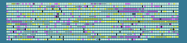 Thermoplasma acidophilum DSM 1728, complete genome - 1..1564906 1482 proteins Pos %G+C SD Location Strand Length PID Gene Synonym Code Product 1 48.39 0 229..786 + 185 16081187 - Ta0001 - V-type ATP synthase subunit E 2 48.18 0 788..1858 + 356 16081188 - Ta0002 - V-type ATP synthase subunit C 3 47.30 0 1859..2173 + 104 16081189 - Ta0003 - V-type ATP synthase subunit F 4 51.29 +1 2183..4477 + 764 16081190 - Ta0004 - V-type ATP synthase subunit A 5 51.01 +1 4410..5840 + 476 16081191 - Ta0005 - V-type ATP synthase subunit B 6 46.88 0 5825..6466 + 213 16081192 - Ta0006 - V-type ATP synthase subunit D 7 41.07 -1 6620..6955 + 111 16082633 ntpF Ta0007a - V-type ATP synthase subunit H 8 47.13 0 6975..8888 + 637 16081193 - Ta0008 - V-type ATP synthase subunit I 9 46.08 0 8957..9568 + 203 16081194 - Ta0009 - glutamine amidotransferase subunit PdxT 10 43.15 0 9573..10652 + 359 16082469 gcvT Ta0010m - aminomethyltransferase (glycine cleavage system T protein) 11 46.43 0 10713..11651 - 312 16081195 - Ta0011 - UDP-glucose 4-epimerase related protein 12 41.90 -1 11812..12021 + 69 16081196 - Ta0012 - hypothetical protein 13 45.95 0 12098..12715 + 205 16081197 - Ta0013 - Fe-superoxide dismutase (sod) 14 42.11 -1 12723..13337 + 204 16082470 ogg Ta0014m - N-glycosylase/DNA lyase 15 46.03 0 13330..14109 - 259 16081198 - Ta0015 - hypothetical protein 16 42.50 -1 14252..14818 - 188 16081199 - Ta0016 - hypothetical protein 17 48.10 0 15264..16157 - 297 16081200 - Ta0017 - hypothetical protein 18 46.38 0 16157..16723 - 188 16081201 - Ta0018 - hypothetical protein 19 47.66 0 16973..17614 + 213 16081202 - Ta0019 - hypothetical protein 20 43.93 0 17617..18135 + 172 16081203 - Ta0020 - hypothetical protein 21 43.12 0 18173..18448 - 91 16082634 - Ta0020a - hypothetical protein 22 48.05 0 18613..19611 + 332 16082471 hisC Ta0021m - histidinol-phosphate aminotransferase 23 49.42 0 19686..20456 + 256 16081204 - Ta0022 - hypothetical protein 24 49.39 0 20453..20944 + 163 16082472 - Ta0023m - hypothetical protein 25 48.68 0 20946..22379 - 477 16081205 - Ta0024 - hypothetical protein 26 50.44 0 22409..23425 - 338 16081206 - Ta0025 - hypothetical protein 27 50.05 0 23443..24393 - 316 16081207 - Ta0026 - threonine synthase 28 48.89 0 24534..25388 - 284 16081208 - Ta0027 - alcohol dehydrogenase related protein 29 35.57 -2 25735..26091 + 118 16081209 - Ta0028 - hypothetical protein 30 40.40 -1 26048..26896 + 282 16081210 - Ta0029 - hypothetical protein 31 51.11 +1 26945..28120 + 391 16081211 - Ta0030 - acetyl-CoA acetyltransferase 32 49.58 0 28122..28595 + 157 16081212 - Ta0031 - hypothetical protein 33 47.15 0 28596..29051 - 151 16081213 - Ta0032 - hypothetical protein 34 45.17 0 29357..29956 + 199 16081214 - Ta0033 - hypothetical protein 35 49.47 0 29986..30270 - 94 16081215 - Ta0034 - hypothetical protein 36 46.12 0 30356..30871 - 171 16081216 - Ta0035 - hypothetical protein 37 51.75 +1 31002..34259 + 1085 16082473 polC Ta0036m - DNA polymerase II large subunit 38 50.51 0 34261..35040 + 259 16081217 - Ta0037 - GTPase 39 49.17 0 35175..35780 - 201 16081218 - Ta0038 - 72K mitochondrial outer membrane protein related protein 40 45.81 0 35973..36437 - 154 16081219 - Ta0039 - hypothetical protein 41 49.45 0 36444..38819 - 791 16081220 valS Ta0040 - valyl-tRNA synthetase 42 48.38 0 38857..39441 + 194 16081221 - Ta0041 - hypothetical protein 43 48.38 0 39438..40055 - 205 16081222 - Ta0042 - hypothetical protein 44 44.69 0 40052..40324 - 90 16082635 - Ta0042a - hypothetical protein 45 48.66 0 40926..42563 - 545 16082474 pyrG Ta0044m - CTP synthetase 46 51.34 +1 42841..44850 + 669 16082475 fdhF Ta0045m - formate dehydrogenase, alpha subunit 47 45.60 0 44847..45767 + 306 16081223 - Ta0046 - anaerobic sulfite reduction protein A related protein 48 49.66 0 45805..46539 + 244 16081224 - Ta0047 - anaerobic sulfite reduction protein B related protein 49 49.55 0 46709..48139 + 476 16081225 - Ta0048 - phosphate permease related protein 50 37.63 -2 48715..49413 - 232 16081226 - Ta0049 - hypothetical protein 51 47.24 0 49626..50078 + 150 16081227 - Ta0050 - 30S ribosomal protein S19e 52 43.12 0 49986..50312 - 108 16081228 - Ta0051 - hypothetical protein 53 48.00 0 50229..50603 + 124 16081229 - Ta0052 - hypothetical protein 54 50.00 0 50600..50755 + 51 16081230 rpl39e Ta0053 - 50S ribosomal protein L39e 55 41.58 -1 50757..51035 + 92 16081231 - Ta0054 - 50S ribosomal protein L31e 56 47.77 0 51082..51732 + 216 16082476 TIF6 Ta0055m - translation initiation factor IF-6 57 47.67 0 51758..52273 - 171 16081232 pyrE Ta0056 - orotate phosphoribosyltransferase 58 48.20 0 52384..54246 + 620 16082477 RAD3 Ta0057m - Rad3-related DNA helicase 59 48.82 0 54290..54754 + 154 16081233 - Ta0058 - N-terminal acetyltransferase complex ard1 subunit related protein 60 50.12 0 54976..56178 - 400 16081234 - Ta0059 - S-adenosylmethionine synthetase 61 51.36 +1 56313..57788 + 491 16081235 purH Ta0060 - bifunctional phosphoribosylaminoimidazolecarboxamide formyltransferase/IMP cyclohydrolase 62 47.22 0 57809..58564 - 251 16081236 - Ta0061 - 3-hydroxybutyryl-COA dehydratase 63 45.12 0 58883..59722 - 279 16081237 - Ta0062 - hypothetical protein 64 46.95 0 59733..62045 - 770 16081238 - Ta0063 - DNA topoisomerase I 65 44.32 0 62052..62324 - 90 16082478 acyP Ta0064m - acylphosphatase 66 43.76 0 62457..63962 - 501 16082479 - Ta0065m - permease 67 45.21 0 64078..64860 - 260 16081239 - Ta0066 - gliding motility protein (gldA) related protein 68 45.26 0 65043..66023 - 326 16081240 - Ta0067 - hypothetical protein 69 49.48 0 66184..67533 + 449 16081241 - Ta0068 - 4-aminobutyrate aminotransferase 70 42.12 -1 67536..68138 - 200 16081242 - Ta0069 - hypothetical protein 71 37.27 -2 68540..69022 + 160 16081243 - Ta0070 - hypothetical protein 72 34.30 -2 69024..69230 + 68 16081244 - Ta0071 - hypothetical protein 73 49.65 0 70585..71718 + 377 16081245 - Ta0072 - cell division protein FtsZ 74 50.00 0 71767..72414 + 215 16081246 - Ta0073 - orotidine 5'-phosphate decarboxylase 75 45.45 0 72