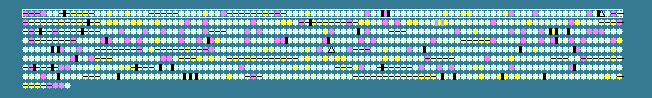 Tropheryma whipplei str. Twist, complete genome - 1..927303 808 proteins Pos %G+C SD Location Strand Length PID Gene Synonym Code Product 1 38.83 -2 1..1437 + 478 28492968 dnaA TWT001 - chromosomal replication initiator protein 2 37.83 -2 1767..2900 + 377 28492969 dnaN TWT002 - DNA polymerase III subunit beta 3 38.83 -2 2890..3981 + 363 28492970 recF TWT003 - recF protein 4 39.77 -2 4011..4445 + 144 28492971 - TWT004 - hypothetical protein 5 47.64 0 4485..6434 + 649 28492972 gyrB TWT005 - DNA gyrase subunit B 6 49.27 0 6438..8897 + 819 28492973 gyrA1 TWT006 - DNA gyrase subunit A 7 44.88 0 8894..9274 + 126 28492974 - TWT007 - hypothetical protein 8 49.29 0 9640..10341 - 233 28492975 - TWT008 - hypothetical protein 9 50.70 +1 10457..11095 + 212 28492976 - TWT009 - hypothetical protein 10 50.48 +1 11133..11342 - 69 28492977 - TWT010 - putative septation inhibitor protein 11 50.86 +1 11399..12037 + 212 28492978 pabA TWT011 - para-aminobenzoate synthetase component II 12 49.56 0 12143..12715 + 190 28492979 - TWT012 - hypothetical protein 13 48.86 0 12752..13627 + 291 28492980 - TWT013 - putative protease HtpX 14 47.31 0 13628..13999 + 123 28492981 - TWT014 - hypothetical protein 15 51.09 +1 14119..15402 + 427 28492982 - TWT015 - hypothetical protein 16 48.83 0 15427..16278 + 283 28492983 - TWT016 - 2,5-diketo-D-gluconic acid reductase 17 48.76 0 16394..18046 - 550 28492984 pmmB TWT017 - phosphomannomutase 18 50.40 +1 18059..18943 - 294 28492985 deoD TWT018 - purine nucleoside phosphorylase 19 48.66 0 18949..20370 + 473 28492986 - TWT019 - flavoprotein disulfide reductase 20 46.11 0 20439..22214 - 591 28492987 bccA TWT020 - biotin carboxylase 21 49.45 0 22687..23139 + 150 28492988 - TWT021 - hypothetical protein 22 45.45 0 23155..23550 + 131 28492989 - TWT022 - hypothetical protein 23 46.70 0 24086..25663 - 525 28492990 pccB TWT023 - propionyl-CoA carboxylase beta chain 24 44.18 0 25725..26471 + 248 28492991 birA TWT024 - biotin acetyl-CoA carboxylase ligase 25 44.59 0 26548..27009 - 153 28492992 - TWT025 - hypothetical protein 26 48.04 0 26789..28243 + 484 28492993 purK TWT026 - phosphoribosylaminoimidazole carboxylase ATPase subunit 27 48.07 0 28322..28864 + 180 28492994 purE TWT027 - phosphoribosylaminoimidazole carboxylase catalytic subunit 28 46.81 0 29089..29511 - 140 28492995 - TWT028 - hypothetical protein 29 48.84 0 29815..30678 - 287 28492996 rmlD TWT029 - dTDP-4-dehydrorhamnose reductase 30 45.63 0 30675..31658 - 327 28492997 rmlB TWT030 - dTDP-glucose 4,6-dehydratase 31 50.16 +1 31903..32526 + 207 28492998 rmlC TWT031 - dTDP-4-dehydrorhamnose 3,5-epimerase 32 44.94 0 32582..33460 + 292 28492999 rmlA TWT032 - glucose-1-phosphate thymidylyltransferase 33 45.11 0 33468..34316 - 282 28493000 wbbL TWT033 - glycosyl transferase 34 42.26 -1 34313..35119 - 268 28493001 - TWT034 - ABC transporter ATP-binding protein 35 43.85 0 35171..36064 - 297 28493002 - TWT035 - ABC transporter permease protein 36 45.99 0 36127..37098 + 323 28493003 - TWT036 - glycosyltransferase 37 44.44 0 37206..37646 - 146 28493004 - TWT037 - hypothetical protein 38 48.42 0 37559..38287 - 242 28493005 - TWT038 - glycosyltransferase 39 49.62 0 38645..40486 + 613 28493006 - TWT039 - hypothetical protein 40 47.25 0 41337..41846 + 169 28493007 - TWT040 - hypothetical protein 41 53.14 +2 42390..42596 + 68 28493008 - TWT041 - hypothetical protein 42 47.12 0 42593..42991 + 132 28493009 - TWT042 - hypothetical protein 43 42.63 -1 43118..43429 + 103 28493010 - TWT043 - hypothetical protein 44 47.45 0 43793..44224 + 143 28493011 - TWT044 - hypothetical protein 45 46.41 0 44228..44617 + 129 28493012 - TWT045 - hypothetical protein 46 44.81 0 44764..46218 - 484 28493013 - TWT046 - two-component system sensor histidine kinase 47 47.88 0 46222..46977 - 251 28493014 - TWT047 - two-component system response regulator 48 50.53 +1 47170..47547 + 125 28493015 capB TWT048 - cold shock protein B 49 44.19 0 47875..48657 + 260 28493016 soj TWT049 - putative sporulation protein Soj 50 46.35 0 48731..49867 + 378 28493017 tyrA TWT050 - prephenate dehydrogenase 51 48.33 0 49849..51909 + 686 28493018 - TWT051 - bifunctional cytidylate kinase/GTP-binding protein 52 43.91 0 51906..53210 - 434 28493019 menF TWT052 - isochorismate synthase 53 49.17 0 53279..53998 + 239 28493020 ubiE TWT053 - ubiquinone/menaquinone biosynthesis methyltransferase 54 48.67 0 54010..55026 + 338 28493021 grcC TWT054 - heptaprenyl diphosphate synthase component II 55 48.07 0 55045..56388 + 447 28493022 - TWT055 - ferredoxin--NADP+ reductase 56 47.43 0 56728..57699 - 323 28493023 fecB TWT056 - iron (III) dicitrate ABC transporter substrate-binding protein 57 47.19 0 57844..58839 - 331 28493024 - TWT057 - iron ABC transporter substrate-binding protein 58 42.33 -1 59057..59890 - 277 28493025 fepC TWT058 - iron ABC transporter ATP-binding protein 59 45.88 0 59826..61013 - 395 28493026 fepG TWT059 - iron ABC transporter permease protein 60 47.62 0 60866..61831 - 321 28493027 fepD TWT060 - iron ABC transporter permease protein 61 40.80 -1 62223..62570 + 115 28493028 - TWT061 - transcriptional regulator 62 45.48 0 62866..64503 - 545 28493029 lysK TWT062 - lysyl-tRNA synthetase 63 46.02 0 64592..65458 + 288 28493030 panC TWT063 - pantoate--beta-alanine ligase 64 43.69 0 65755..67251 + 498 28493031 cls TWT064 - cardiolipin synthetase 65 49.50 0 67303..69825 + 840 28493032 clpC TWT065 - ATP-dependent Clp protease ATP-binding subunit 66 47.56 0 70003..70227 - 74 28493033 - TWT066 - hypothetical protein 67 44.78 0 70228..70524 + 98 28493034 - TWT067 - hypothetical protein 68 49.05 0 70560..72143 + 527 28493035 menD TWT068 - 2-oxoglutarate decarboxylase 69 44.14 0 72153..72698 + 181 28493036 - TWT069 - hypothetical protein 70 47.15 0 72719..73630 + 303 28493037 menA TWT070 - 1,4-dihydroxy-2-naphthoate octaprenyltransferase 71 50.63 +1 73769..77335 + 1188 28493038 rpoB TWT071 - DNA-directed RNA polymerase subunit beta 72 48.87 0 77362..81222 + 1286 28493039 rpoC TWT072 - DNA-directed 