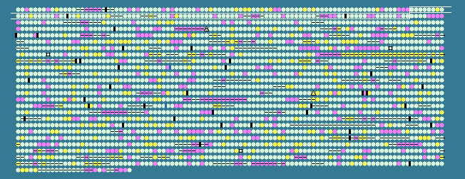 Synechococcus elongatus PCC 6301, complete genome - 1..2696255 2527 proteins Pos %G+C SD Location Strand Length PID Gene Synonym Code Product 93 54.36 0 103793..105433 - 546 56750103 - syc0094_c - porin; major outer membrane protein 94 56.49 0 105655..106725 + 356 56750104 - syc0095_d - Iron-regulated protein A precursor 95 58.39 0 107195..108088 + 297 56750105 - syc0096_d - thiol oxidoreductase 96 56.59 0 108219..108476 + 85 56750106 - syc0097_d - hypothetical protein 97 58.62 0 108585..109205 + 206 56750107 - syc0098_d - hypothetical protein 98 58.20 0 109269..109835 + 188 56750108 - syc0099_d - hypothetical protein 99 61.80 +1 109815..110492 - 225 56750109 plsC syc0100_c - 1-acyl-sn-glycerol-3-phosphate acyltransferase 100 57.71 0 110461..111342 - 293 56750110 - syc0101_c - acyl-carrier-protein S-malonyltransferase 101 57.14 0 111396..112403 - 335 56750111 fabH syc0102_c - 3-oxoacyl-(acyl carrier protein) synthase III 102 59.46 0 112473..113513 - 346 161621823 plsX syc0103_c - putative glycerol-3-phosphate acyltransferase PlsX 103 57.99 0 113664..114320 - 218 56750113 - syc0104_c - two-component response regulator for energy transfer from phycobilisomes to photosystems 104 59.71 0 114603..116039 + 478 56750114 radA syc0105_d - DNA repair protein RadA 105 55.63 0 116036..116497 - 153 56750115 - syc0106_c - hypothetical protein 106 57.30 0 116540..117340 - 266 56750116 pstB syc0107_c - phosphate transport system ATP-binding protein 107 58.90 0 117405..118472 + 355 56750117 lpxD syc0108_d - UDP-3-O-[3-hydroxymyristoyl] glucosamine N-acyltransferase 108 57.11 0 118492..119454 - 320 56750118 nadA syc0109_c - quinolinate synthetase 109 56.53 0 119490..120308 - 272 56750119 icfA syc0110_c - carbonic anhydrase 110 50.62 -1 120395..120874 + 159 56750120 - syc0111_d - hypothetical protein 111 52.69 0 120980..122095 + 371 56750121 - syc0112_d - hypothetical protein 112 55.87 0 122508..123581 - 357 56750122 - syc0113_c - fructose-1,6-bisphosphate aldolase 113 55.86 0 123965..124399 - 144 56750123 - syc0114_c - hypothetical protein 114 59.41 0 124647..125624 + 325 56750124 cobD syc0115_d - cobalamin biosynthesis protein 115 61.02 +1 125705..126625 + 306 56750125 thrB syc0116_d - homoserine kinase 116 55.43 0 126768..128369 + 533 56750126 ndhD syc0117_d - NAD(P)H-quinone oxidoreductase subunit 4 117 55.96 0 128508..129002 + 164 56750127 pmgA syc0118_d - photomixotrophic growth related protein PmgA-like protein 118 59.42 0 129131..129268 + 45 56750128 pmgA syc0119_d - photomixotrophic growth related protein PmgA 119 58.06 0 129234..129512 - 92 109150054 - syc0120-da - hypothetical protein 120 55.48 0 129593..130039 + 148 56750129 - syc0120_d - hypothetical protein 121 58.32 0 130075..131823 + 582 56750130 menD syc0121_d - 2-succinyl-6-hydroxy-2,4-cyclohexadiene-1-carboxylic acid synthase/2-oxoglutarate decarboxylase 122 60.33 +1 131944..132543 + 199 56750131 - syc0122_d - hypothetical protein 123 58.07 0 132757..133815 - 352 56750132 argC syc0123_c - N-acetyl-gamma-glutamyl-phosphate reductase 124 56.47 0 134088..135773 + 561 56750133 ribA syc0124_d - bifunctional 3,4-dihydroxy-2-butanone 4-phosphate synthase/GTP cyclohydrolase II protein 125 57.31 0 135812..136249 - 145 56750134 rot syc0125_c - peptidyl-prolyl cis-trans isomerase 126 53.26 0 136626..137483 + 285 56750135 - syc0126_d - hypothetical protein 127 58.15 0 137532..137942 + 136 56750136 - syc0127_d - hypothetical protein 128 56.99 0 138205..139392 - 395 56750137 purK syc0128_c - phosphoribosylaminoimidazole carboxylase ATPase subunit 129 53.87 0 139494..139829 - 111 56750138 rbcS syc0129_c - ribulose bisphosphate carboxylase small subunit 130 57.58 0 139920..141338 - 472 56750139 rbcL syc0130_c - ribulose bisophosphate carboxylase 131 56.32 0 141729..142559 - 276 56750140 ccmO syc0131_c - carbon dioxide concentrating mechanism protein CcmO 132 59.67 0 142601..143086 - 161 56750141 ccmN syc0132_c - carbon dioxide concentrating mechanism protein 133 57.84 0 143122..144741 - 539 56750142 ccmM syc0133_c - carbon dioxide concentrating mechanism protein CcmM 134 54.33 0 144807..145106 - 99 56750143 ccmL syc0134_c - carbon dioxide concentrating mechanism protein CcmL 135 56.31 0 145253..145561 - 102 56750144 ccmK syc0135_c - putative carboxysome assembly protein 136 54.68 0 145891..147291 - 466 56750145 chlN syc0136_c - light-independent protochlorophyllide reductase subunit N 137 48.55 -1 147355..148215 - 286 56750146 chlL syc0137_c - protochlorophyllide reductase iron-sulfur ATP-binding protein 138 60.26 +1 148817..149800 - 327 56750147 - syc0138_c - hypothetical protein 139 57.13 0 149805..152456 - 883 56750148 topA syc0139_c - DNA topoisomerase I 140 54.66 0 152705..154270 + 521 56750149 ndhB syc0140_d - NAD(P)H-quinone oxidoreductase subunit 2 141 57.30 0 154366..155091 + 241 56750150 - syc0141_d - ATP-binding protein of ABC transporter 142 56.22 0 155104..155859 - 251 56750151 - syc0142_c - hypothetical protein 143 56.89 0 155983..156432 + 149 56750152 - syc0143_d - hypothetical protein 144 59.04 0 156442..157149 + 235 56750153 - syc0144_d - hypothetical protein 145 55.02 0 157229..158851 + 540 56750154 leuA syc0145_d - 2-isopropylmalate synthase 146 56.79 0 158931..159953 - 340 56750155 - syc0146_c - iron transport system substrate-binding protein 147 41.67 -2 160245..160880 - 211 56750156 - syc0147_c - membrane-associated protein 148 56.56 0 161112..162743 - 543 56750157 futB syc0148_c - iron(III) ABC transporter permease protein 149 57.99 0 162891..163997 + 368 56750158 - syc0149_d - iron(III)-transport ATP-binding protein 150 59.09 0 164013..164540 - 175 56750159 - syc0150_c - hypothetical protein 151 58.84 0 164716..165405 + 229 56750160 - syc0151_d - two-component response regulator 152 57.89 0 165535..166206 + 223 56750161 - syc0152_d - hydroxyacylglutathione hydrolase 153 47.30 -2 166223..167482 - 419 56750162 - syc0153_c - hypothetical protein 154 53.44 0 167695..168072 + 125 56750163 - syc0154_d - hypothetical protein 155 53.83 0